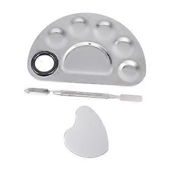 Stainless Steel Nail Art Palette Set with Spatula for Makeup and Manicure, Compact Easy Clean Design