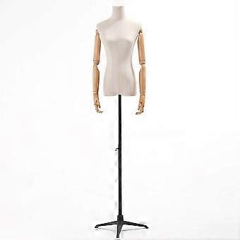 Female Mannequin Dress Form with Movable Arms and Metal Tripod Stand for Women's Clothing Display Black S