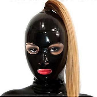 Latex Hood with Ponytail Rubber Head Mask for Men and Women Cosplay Party Wear L68CM