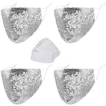 4Pack Sparkly Rhinestone Mesh Face Mask for Women, Reusable Sequin Glitter Face Cover with Adjustable Ear Loops