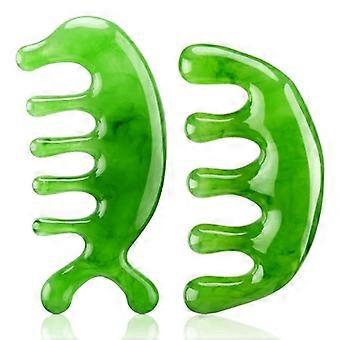 Dual Jade Gua Sha Scalp Massage Comb Set with Smooth Polished Finish for Relaxing Head Relief