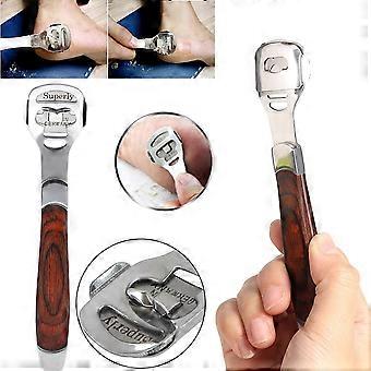 Foot Callus Remover with Stainless Steel Head and Wooden Handle, Pedicure Foot Scraper with 10 Blades