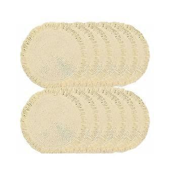 Boho Cotton Woven Placemat with Tassels, Handmade Rustic 10x12 in Beige Table Mat for Wedding or Farmhouse Decor