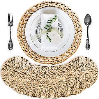 Rustic Oval Woven Placemat Natural Water Hyacinth Weave 12 x 16 Inches Handmade Heat Resistant Non-Slip Dining Table