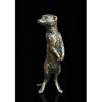 Meerkat Standing Bronze Miniature (Butler and Peach) Dimensions: Height: 1.8 inches (45 mm) Highly collectable small bronze figurines. These highly detailed miniatures are made from solid foundry bronze metal, and so feel weighty for their size. Butler and Peach is a collection of individually sculpted miniature animals in solid bronze. Each sculpture is presented in a high qaulity cloth pouch, and within an attractive Butler and Peach gift box. Materials: bronze.