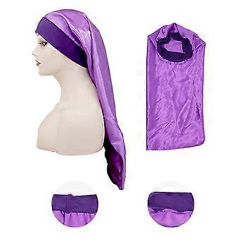 Long Satin Sleep Cap for Women, AntiTangle Design for Curly Hair, Lightweight Silk Bonnet (03)