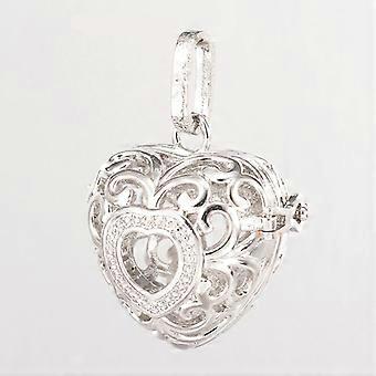 Eco-Friendly Rack Plating Brass Hollow Heart Cage Pendants For Chime Ball Pendant Necklaces Making Cadmium Free & Nickel Free & Lead Free Platinum 27x