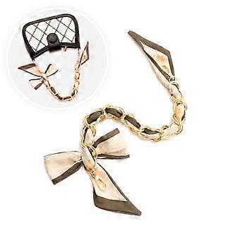 2Pcs Gold Chain Replacement Purse Strap Bag Chain Straps with Bows Extender Brown Bowknot Metal Aluminum Handle with Alloy Clasps for Women Crafts Han