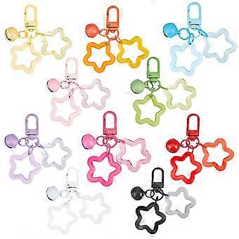10Pcs 10 Colors Acrylic Star Keychain Stars Keychains Bulk Colorful Bell Five Pointed Stars Candy Color Clasp Clip Charm Pendant Key Chains for Women