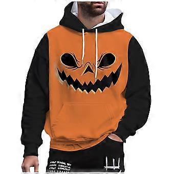 Men's Colour Block Hoodie with Kangaroo Pocket Pumpkin Face Print