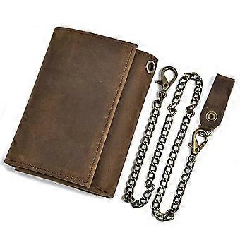 Mens leather wallet Chain small RFID Blocking trifold Wallet Slim Minimalist Western Wallet with Credit Cards(brown)