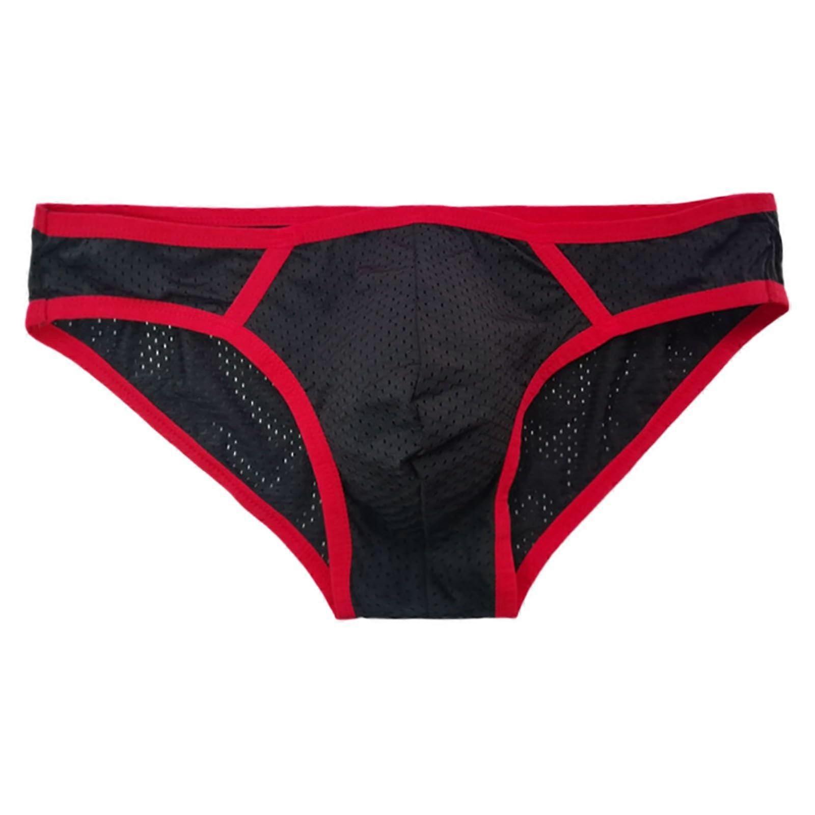 Men's Mesh Briefs Red Size M, Transparent Mesh Underwear, Breathable Lightweight Thong, Soft Lingerie With Wide Belt