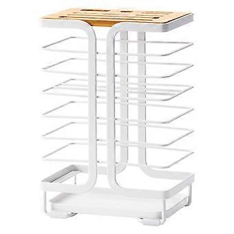 Knife Holder Wood and Iron Kitchen Knife Block with Cutting Board Rack Moisture Resistant Durable Design White