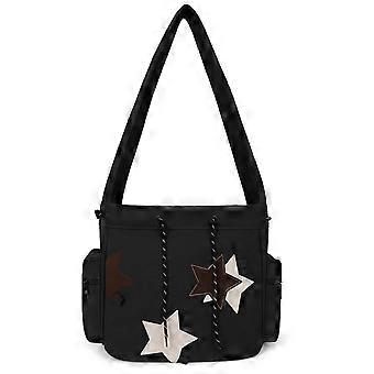 Kawaii Messenger Bag for Women with Multiple Pockets, Vintage Canvas Crossbody Shoulder Bag Black