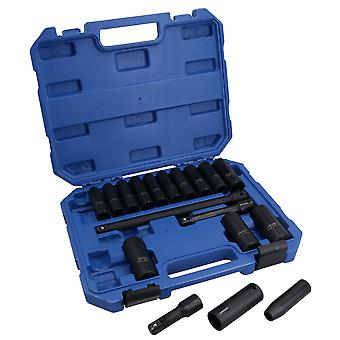 Metric 1/2in Drive Impact Sockets + Extensions 10 – 24mm + 75 – 250mm 18pc