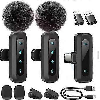 Wireless Lavalier Microphone for iPhone Android PC with Noise Reduction and 360° Sound Capture 2 Pack