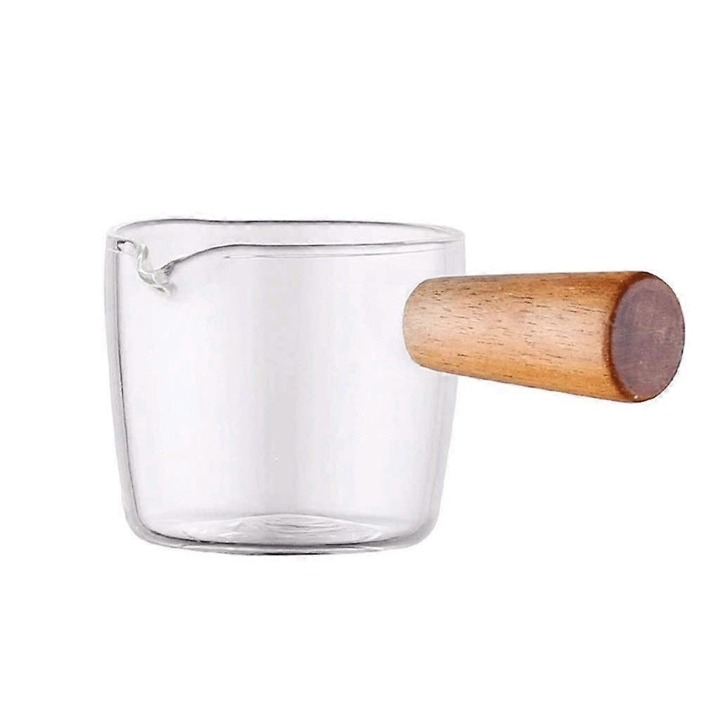 Milk Pot with Wooden Handle, Heat Resistant Glass Sauce Pan, Small 100ml Dip Bowl, Transparent Fruit Salad Bowl