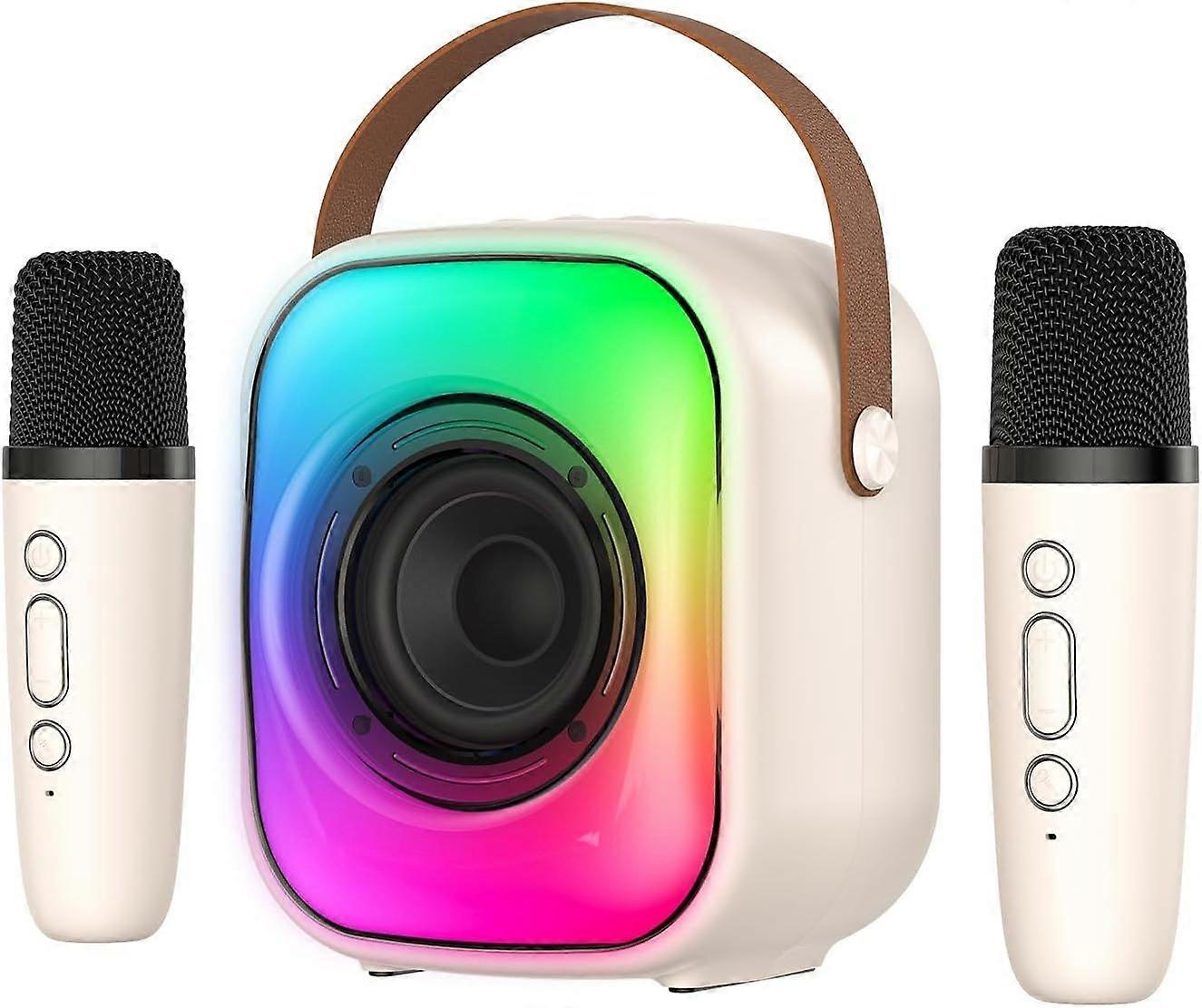 Mini Karaoke Machine with Two Wireless Microphones, Portable Bluetooth Speaker for Adults and Kids