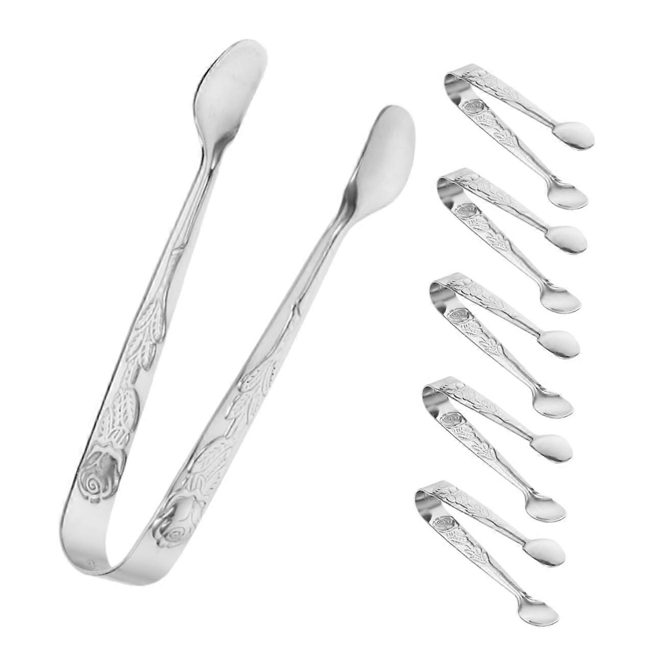 Mini Stainless Steel Tongs 6Piece Rose Pattern Serving Clips For Sugar Cubes Ice Desserts Tea Parties Kitchen