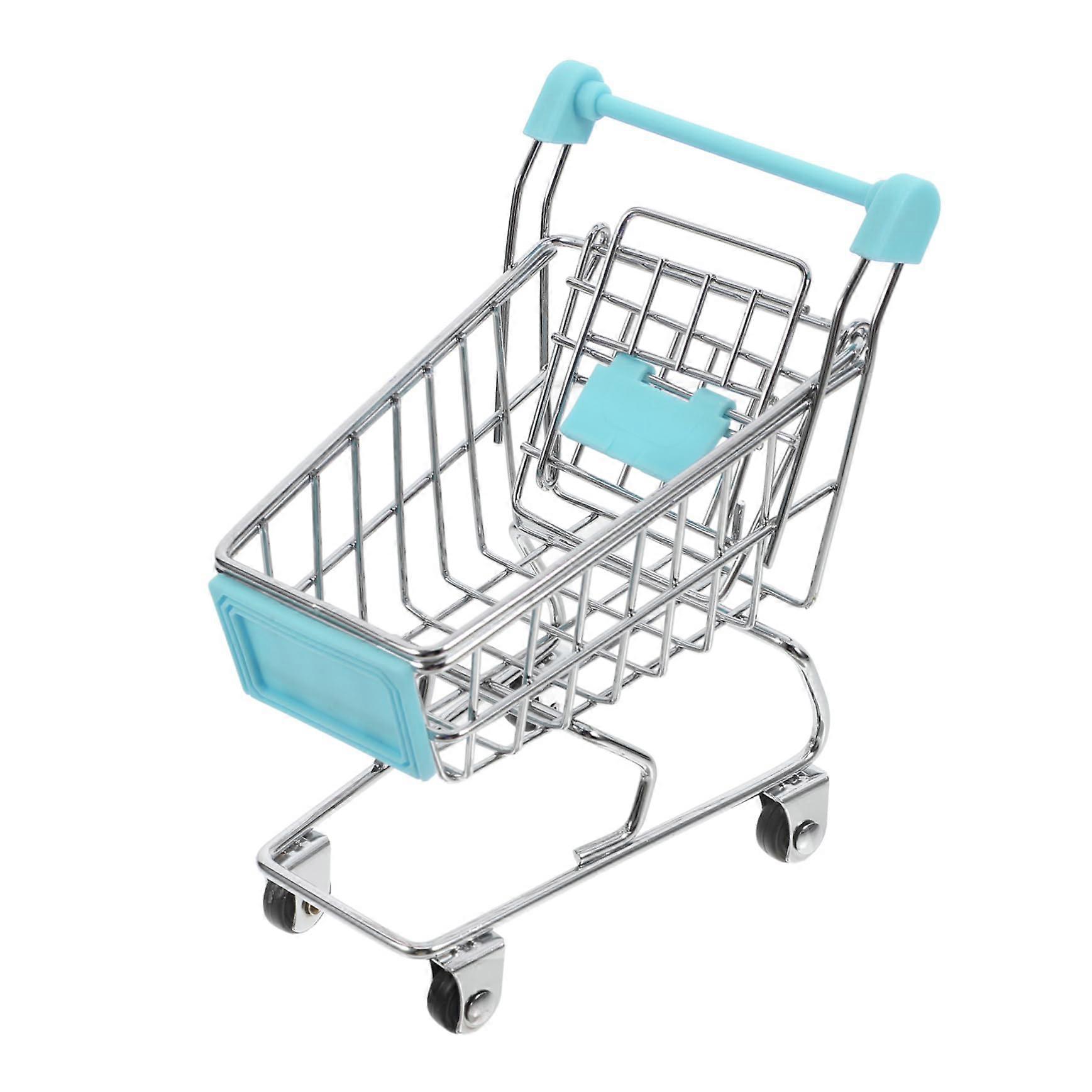 Mini Shopping Cart - Miniature Shopping Trolley Toy for Kids - Blue Metal Design with Handle and Basket