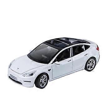 Miniature Engine Vehicle Models 1:24 Scale Tesla Model 3 Die-Cast Metal Car Model With Simulation Sound And Light White