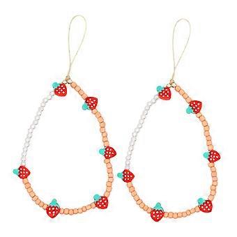 2pcs Strawberry Beaded Phone Lanyard for Women, Cute AntiLoss Wrist Strap Set for Girls