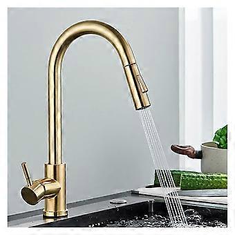 Modern Golden Pull Out Kitchen Faucet with 360 Rotation Single Lever Pressure Tap Brush Gold