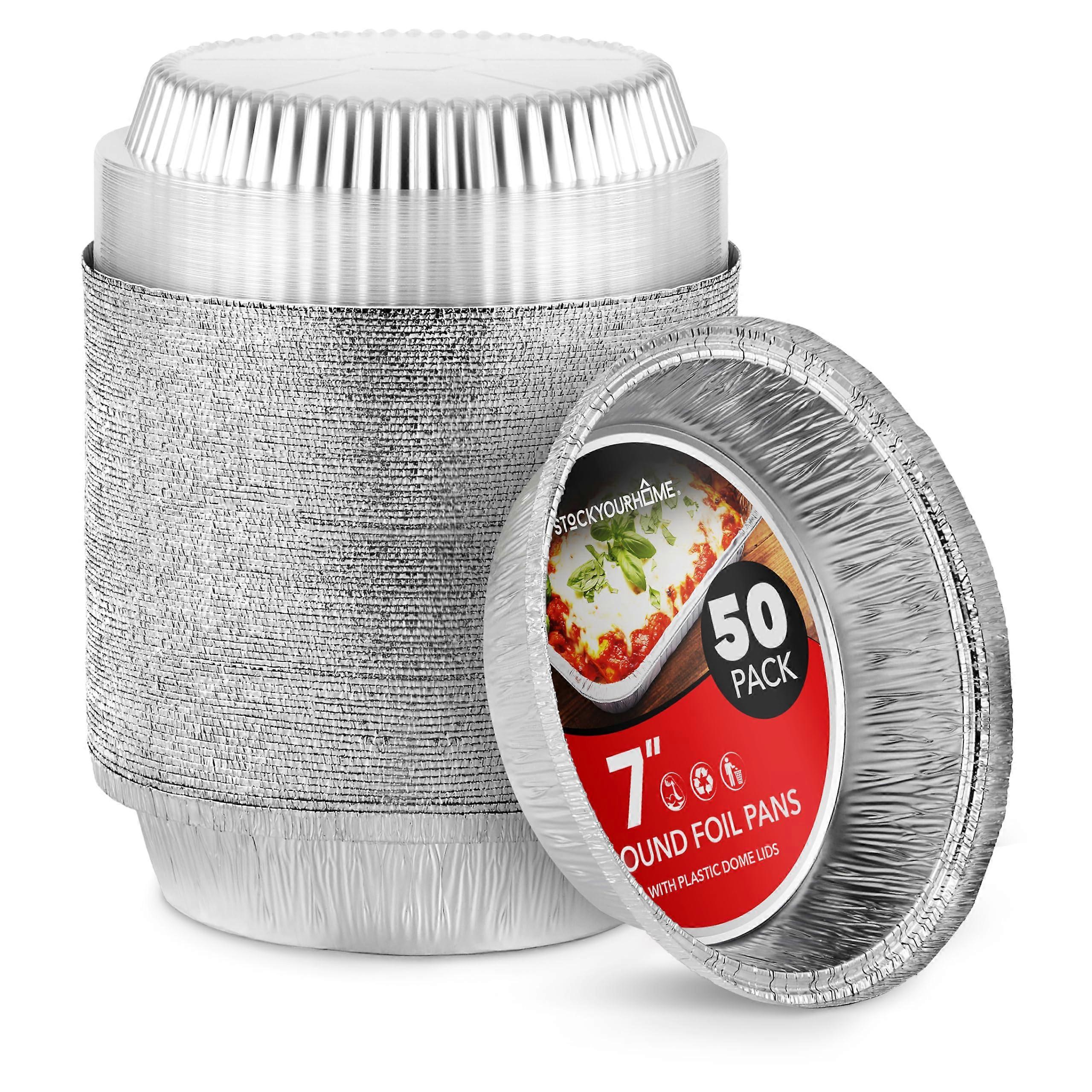 7 Inch Round Aluminum Pans with Lids, 50 Pack Disposable Foil Pie Tins with Clear Dome Top for Baking and Takeout Food