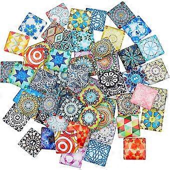 Mosaic Printed Glass Cabochons Square 20x20x5mm 60pcs/box