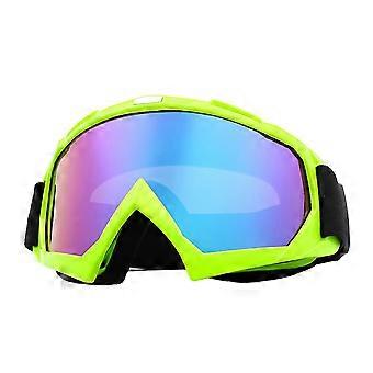 Motocross Goggles with Tear-Resistant PC and Stable Fixation, Round Rim Design, Green and Blue Color