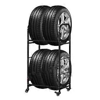 Heavy Duty TwoTier Tire Storage Rack with Wheels, Metal Stand for 4 Tires with Rims Garage Use