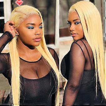 24 Inch Blonde Straight Lace Front Human Hair Wig 150% Density Pre Plucked Natural Hairline