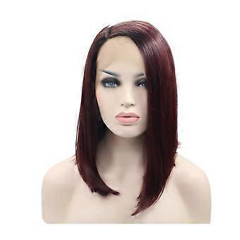 Human Hair Lace Front Bob Wig for Black Women T99j Ombre Wine Malaysian 12 Inch Realistic Hairline