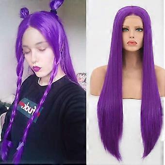 Purple Lace Front Wig 24 Inch Glueless Long Straight Synthetic Heat Resistant Fiber for Women