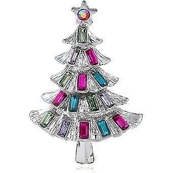 Multi-Rhinestone Christmas Tree Brooch Pin with Green and Red Accents for Holiday Parties and Festive Events