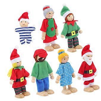 7pcs Wooden Dollhouse Family Set with Movable Arms and Legs, Durable Wood Dolls for Imaginative Play