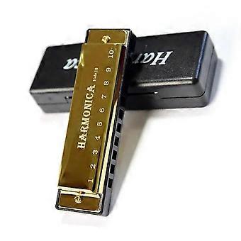 Gold 10 Hole Harmonica C Key Diatonic with Numbered Hole Guidance for Beginners