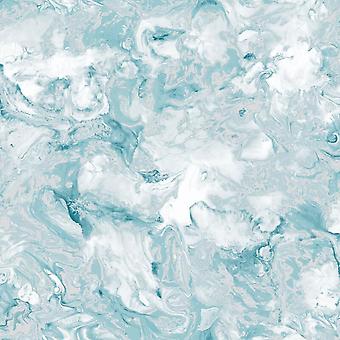 Muriva Elixir Liquid Marble Effect Wallpaper Swirls Teal Silver Metallic Shimmer