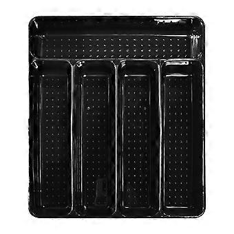 Cutlery Drawer Organizer with 5 Compartments for Kitchen Utensils, Black Plastic Silverware Tray