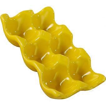 Ceramic Egg Holder Tray with Collision Protection, Yellow Egg Storage Rack for Fridge and Countertop
