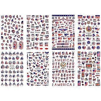 8pcs Independence Day Nail Art Stickers USA Flag Patriotic Nail Decals LongLasting Adhesion