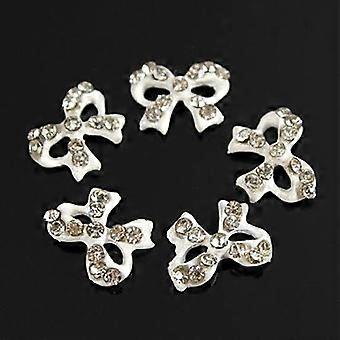 10pcs 3D Alloy Metal Nail Charms Bowknot with Bling Rhinestones for Elegant Nail Art Decorations