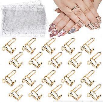 20PCS Gold Nail Rings Adjustable Fit Reusable Adhesive Tabs for Acrylic Press On Nail Art