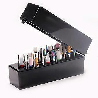Nail Drill Bits Holder with Dustproof Protection, 30 Holes Black Acrylic Storage Case for Efile Bits