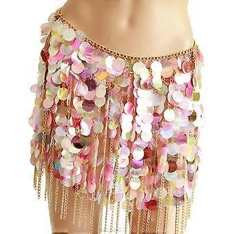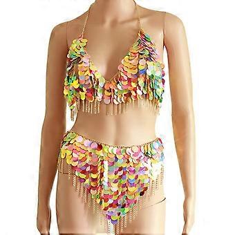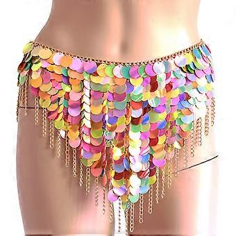 Mixed Color Sequin Bikini Chain Skirts Festival Dance Wear Dress for Women Fringe Body Jewelry