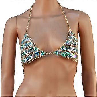 Crystal Body Chain Top Sexy Mesh Chain Harness Women Bikini Nightclub Body Jewelry