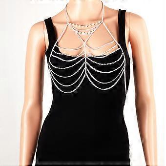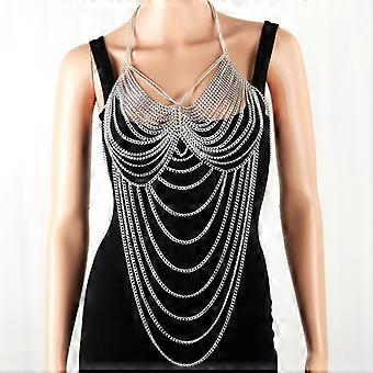 Classic Layered Silver Chain Body Necklace Bikini Mesh Chain Skirts Festival Costume Dance Wear