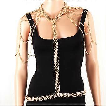 Elegant Layered Shoulder Necklace Festival Wear Gold Body Chain Jewelry