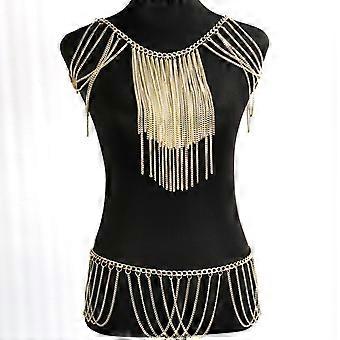 Fashion Tassels Necklace Layered Shoulder Chain Body Jewelry Sexy Mesh Body Chain Skirts for Women