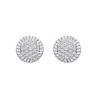 Jewelco London Sterling Silver CZ Round Cluster Stud Earrings Jewelco London